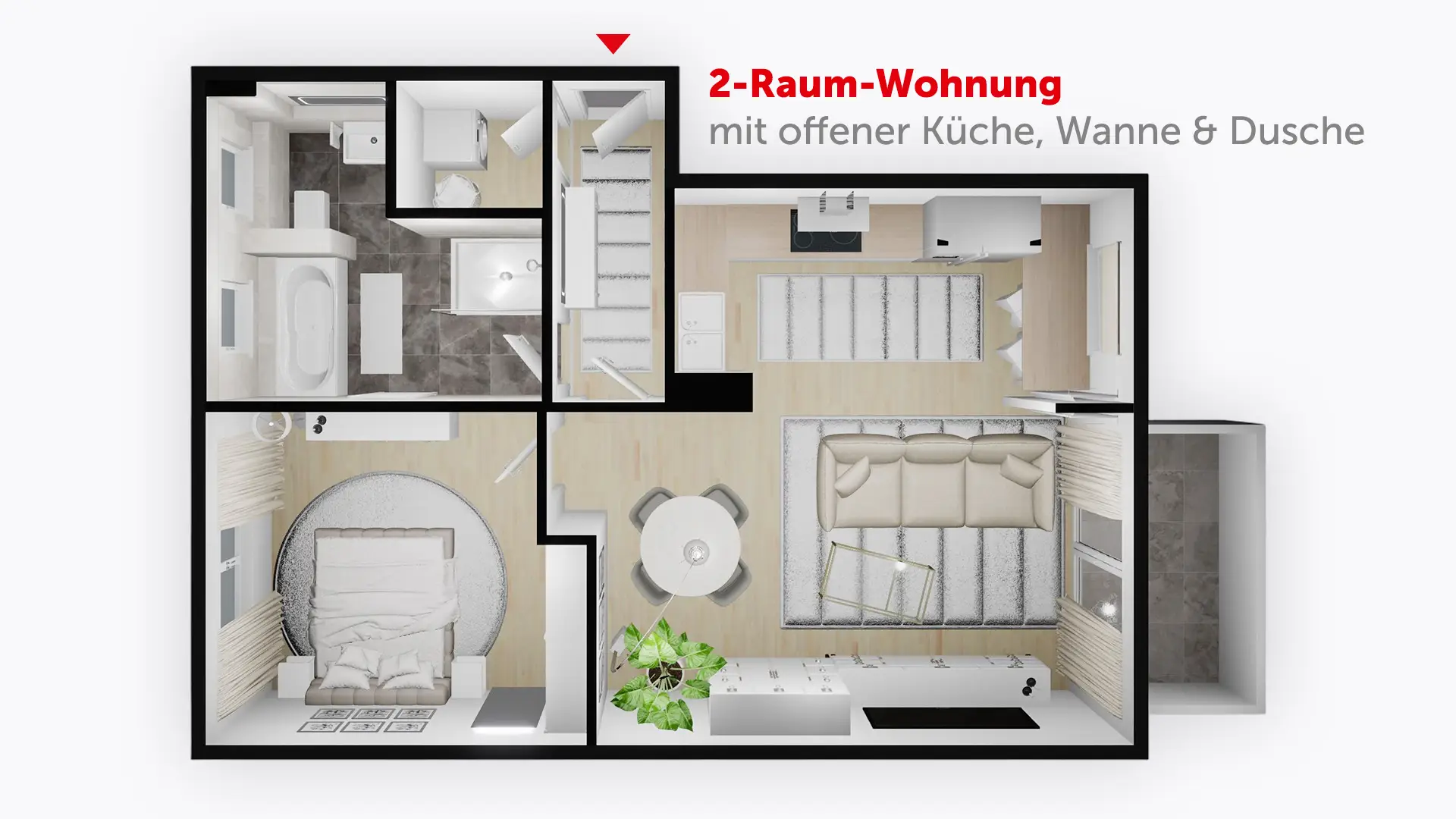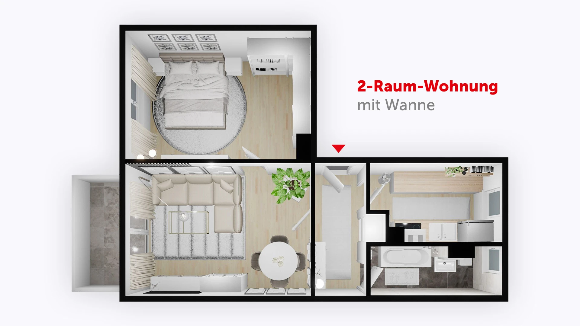 2-Raum-Wohnungen mit ca. 50 m2 und 60 m2