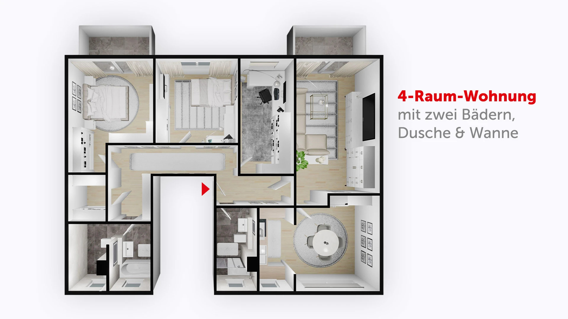 4-Raum-Wohnungen mit ca. 74 m2 und 109 m2